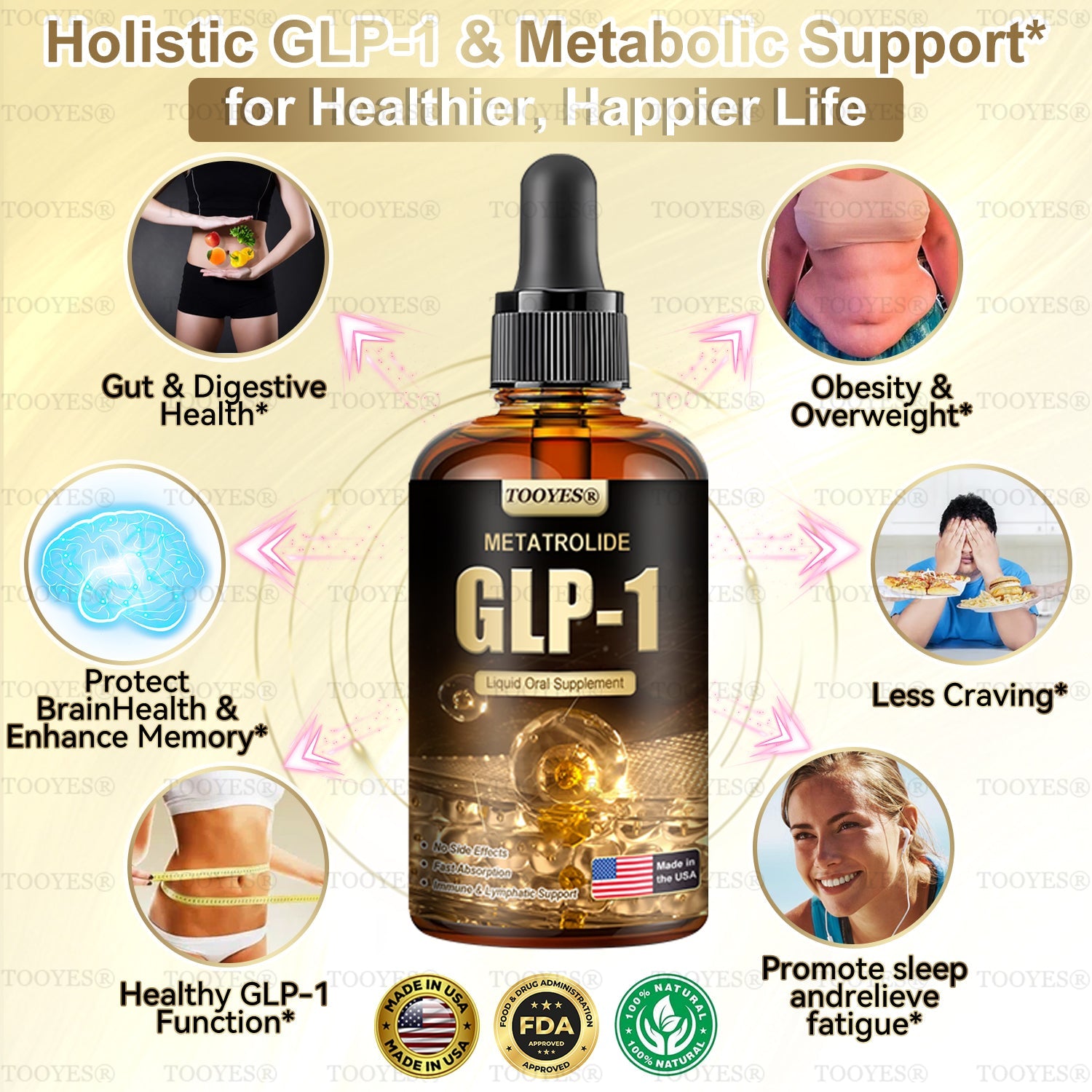 "As an endocrinologist, my focus is on advancing safe, natural, and evidence-based solutions for metabolic health and sustainable weight management. Through rigorous clinical research involving over 5,000 participants, Iâve observed the significant metabolic benefits of TOOYESÂŽ GLP-1 Slimming & Health Boost Drops.This innovative formula is designed to naturally enhance GLP-1 activityâsupporting healthy blood sugar regulation, reducing cravings, and optimizing fat metabolism.Key ingredients like apple cider vinegar, turmeric, and other scientifically backed botanicals work synergistically to promote not only weight loss but also digestive wellness, immune function, and long-term metabolic balance.