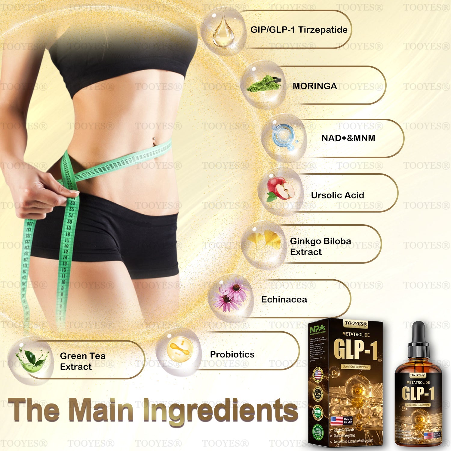 TOOYESÂŽ TIRZEPATIDE & Moringa GLP-1 Activation Diet Drops were developed by a team of over 30 experts from the metabolic medicine department of the worldâs top clinic after more than 20 years of research. The formula combines TIRZEPATIDE with potent herbal ingredients to boost metabolism, accelerate fat burning, and support digestive and lymphatic health. The product has been certified for safety and efficacy, offering a scientifically backed solution for weight loss and overall health.